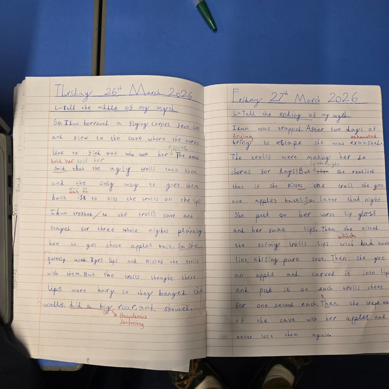 In our excellent art, we experimented with techniques and textures to develop a watercolour scene. We also completed our Viking myths. What amazing writers we are!