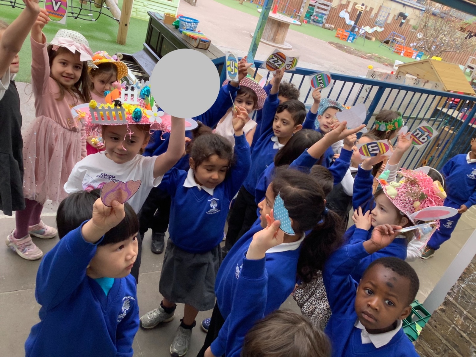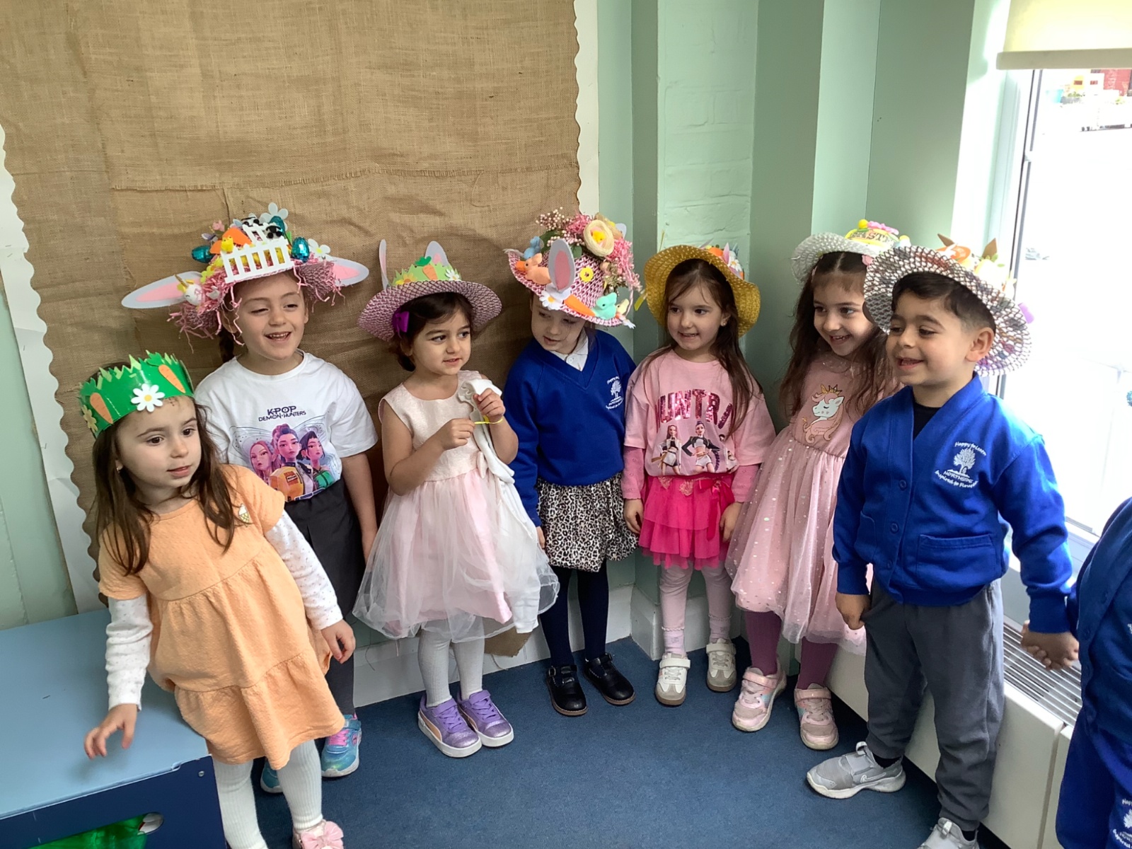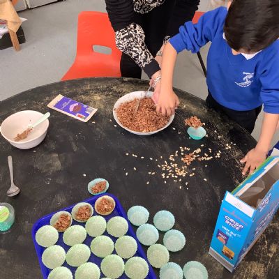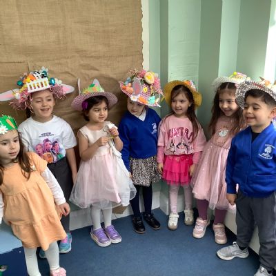 We dressed in green for St Patrick's Day. For Red Nose Day we had an opposite day, some children dressed as our teachers. We celebrated Europe Day, with a French focus and had French visitors. For our Eid celebration we dressed in our party clothes or traditional clothes. As our Excellent Ending we made chocolate Easter nest cakes. We also had a visit from the local church, had an Easter bonnet competition and took part in an egg hunt.
