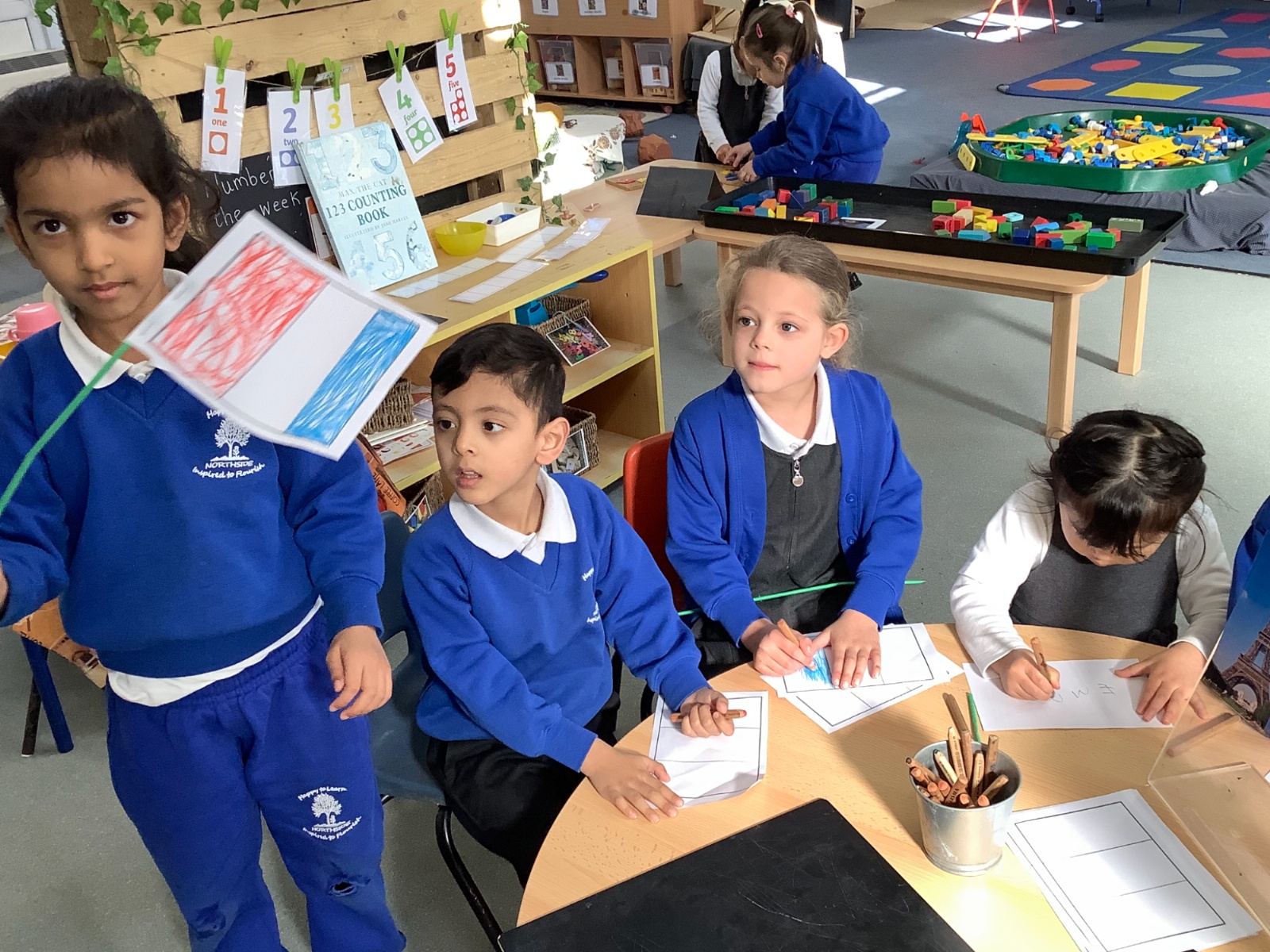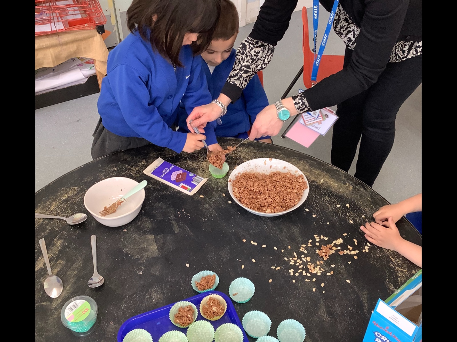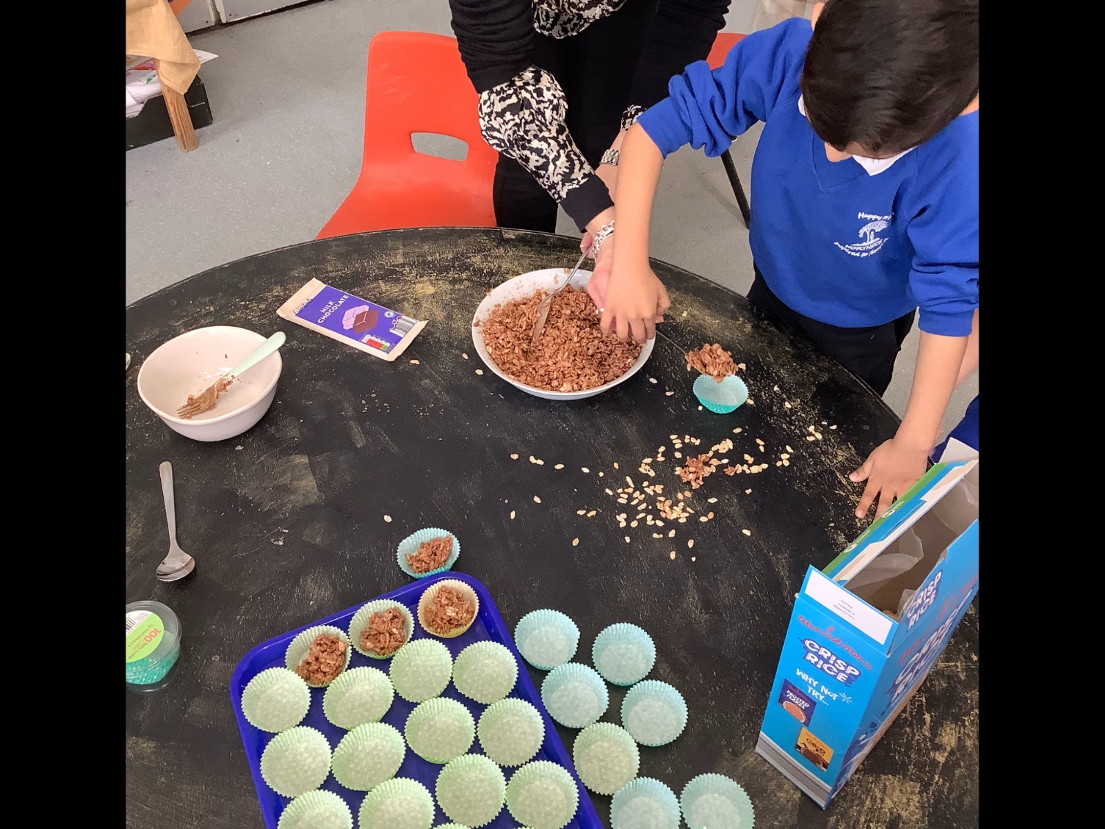 We dressed in green for St Patrick's Day. For Red Nose Day we had an opposite day, some children dressed as our teachers. We celebrated Europe Day, with a French focus and had French visitors. For our Eid celebration we dressed in our party clothes or traditional clothes. As our Excellent Ending we made chocolate Easter nest cakes. We also had a visit from the local church, had an Easter bonnet competition and took part in an egg hunt.