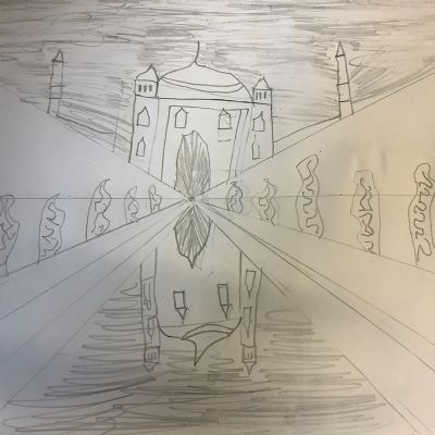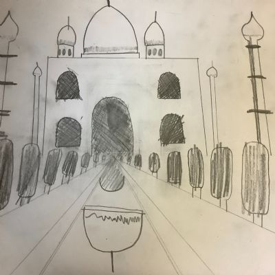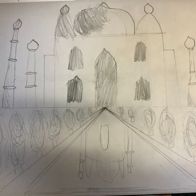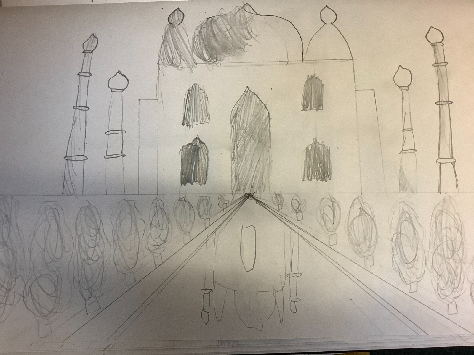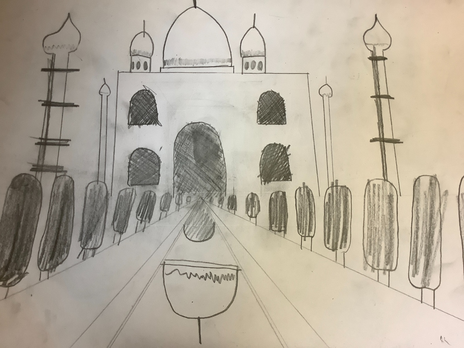 For Asia Day, we used one point perspective to create images of the Taj Mahal in India.