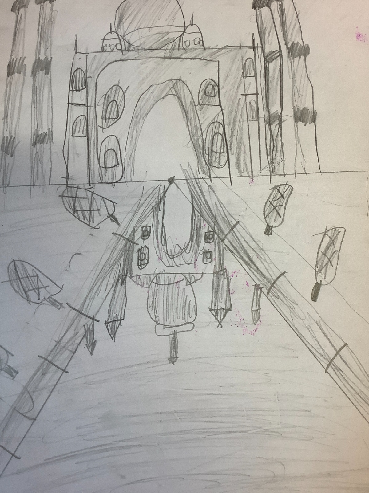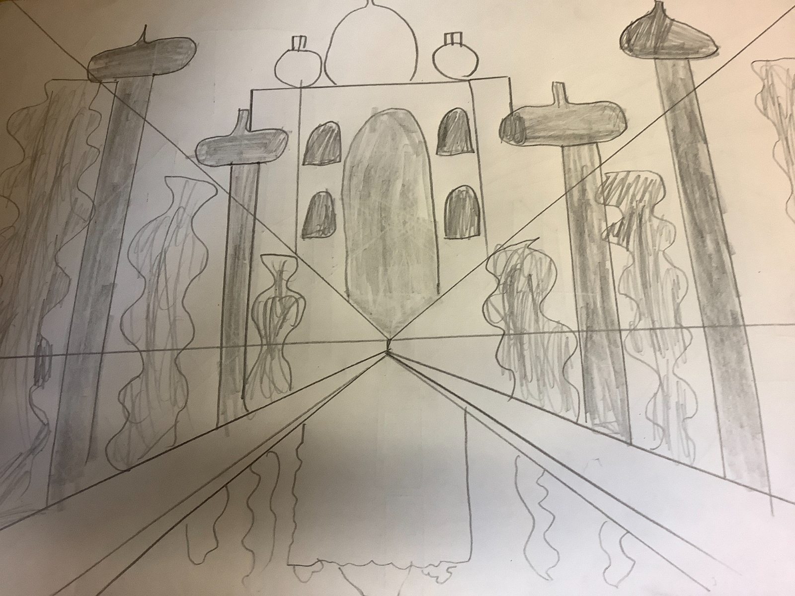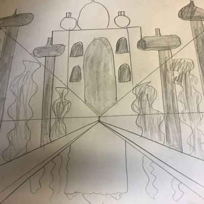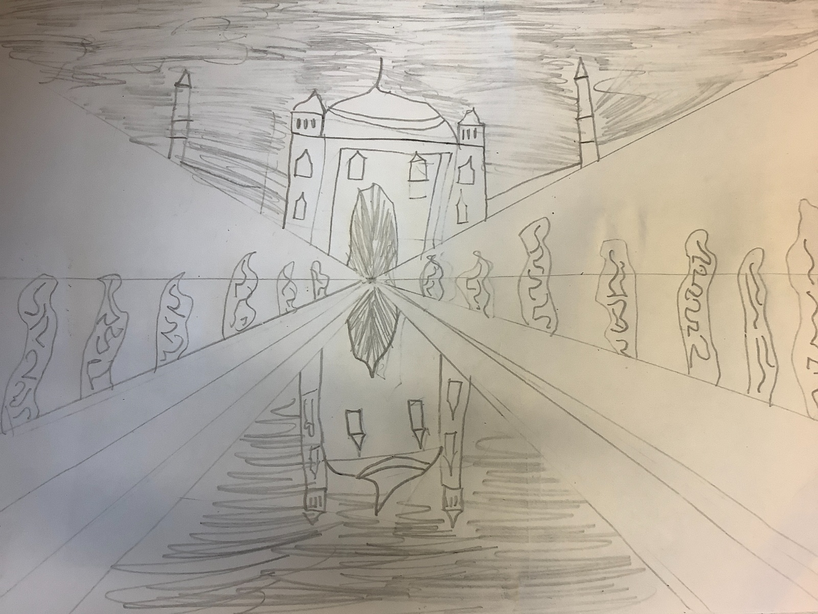 For Asia Day, we used one point perspective to create images of the Taj Mahal in India.