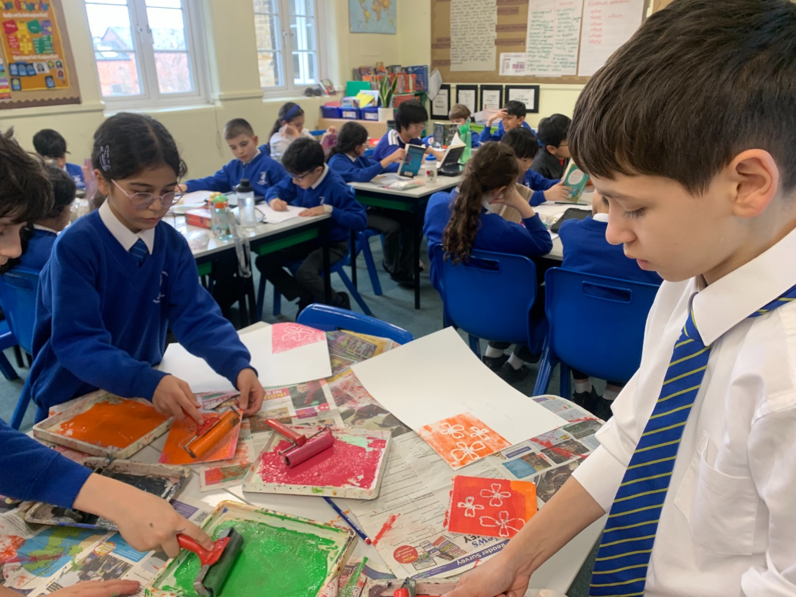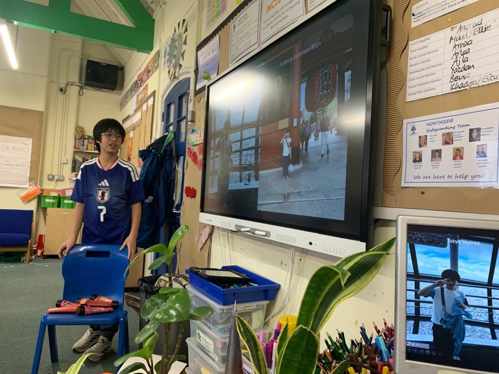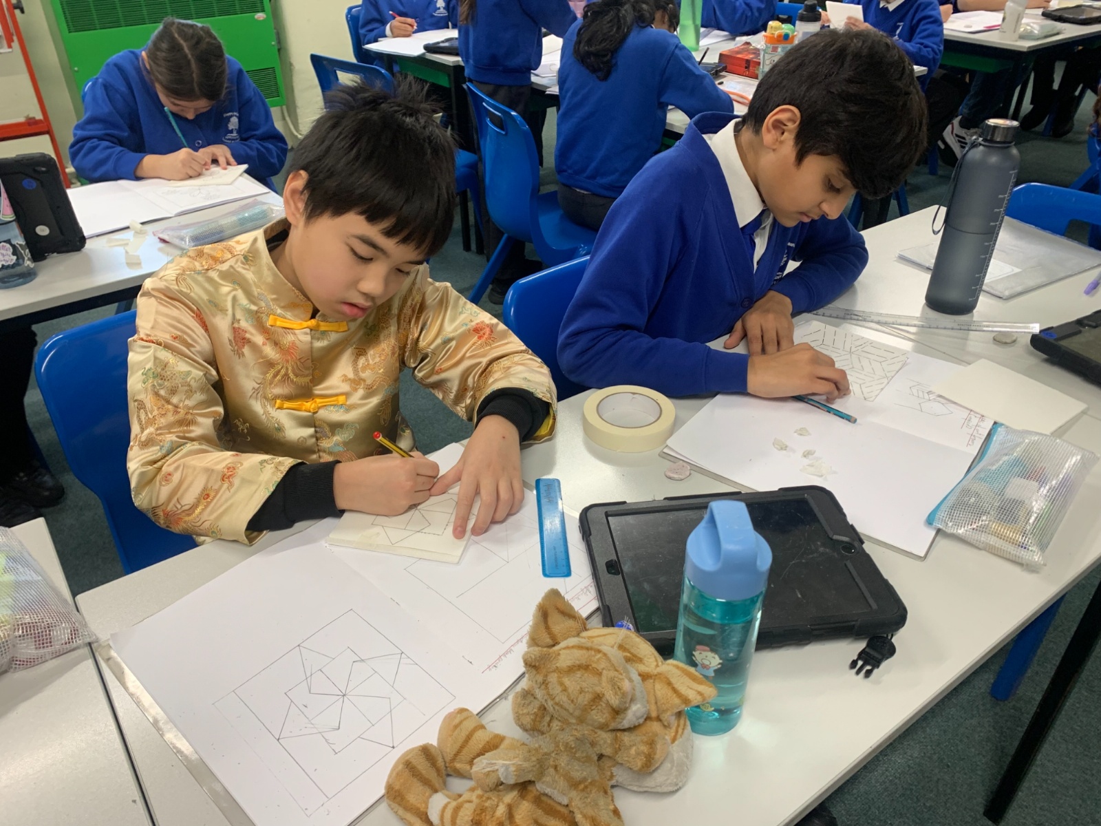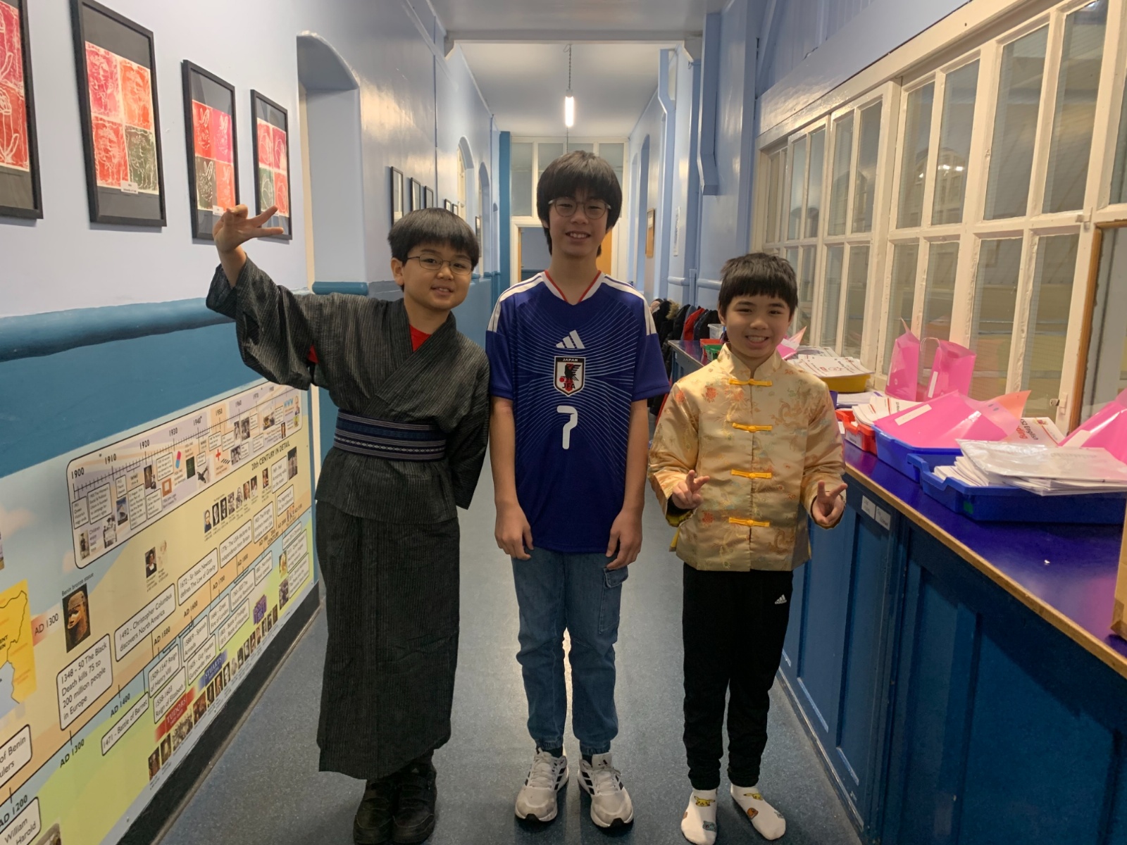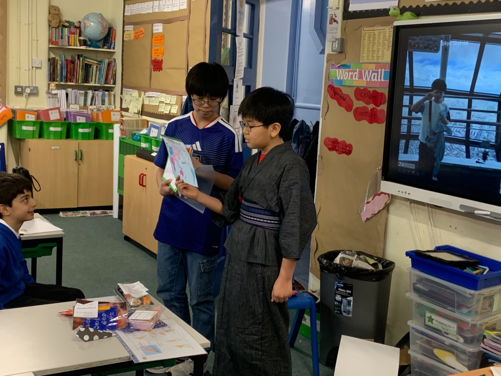 The children were treated to presentations about Japan from both Eita and Benjamin and they created sashiko patterns on polystyrene tiles, creating some wonderful prints.