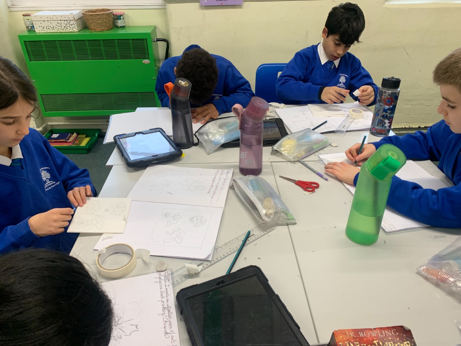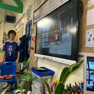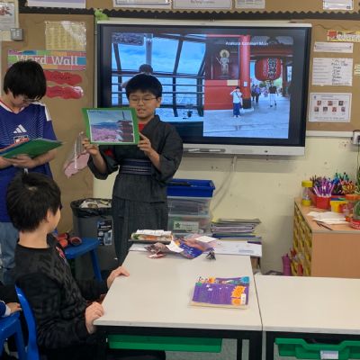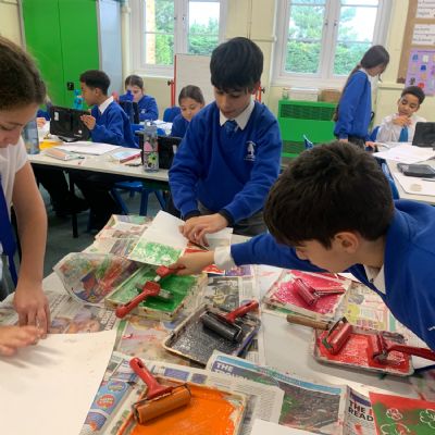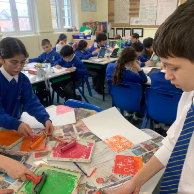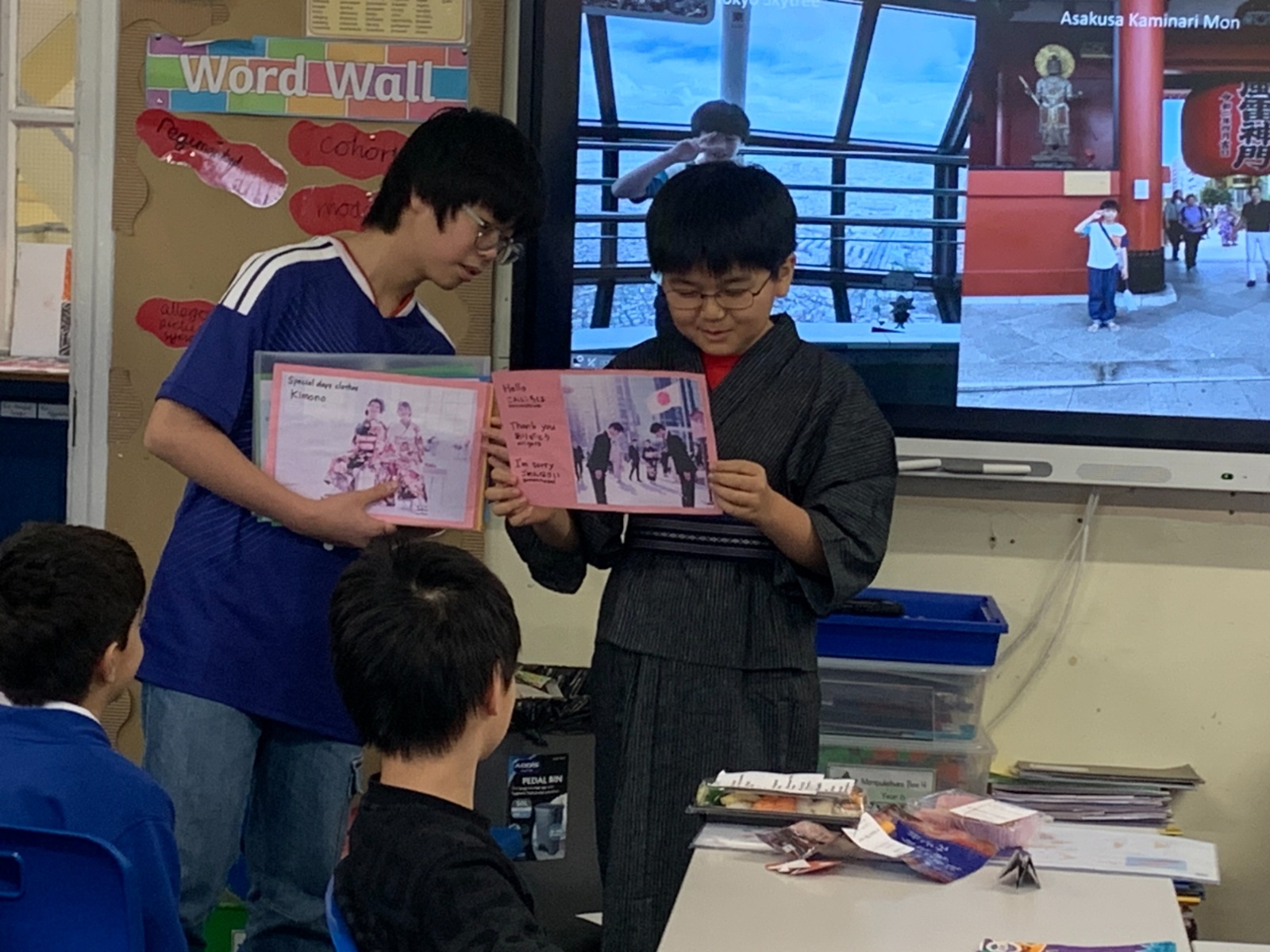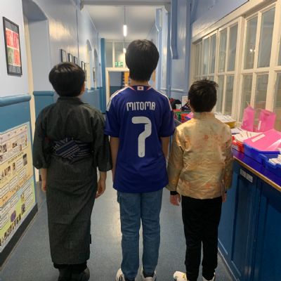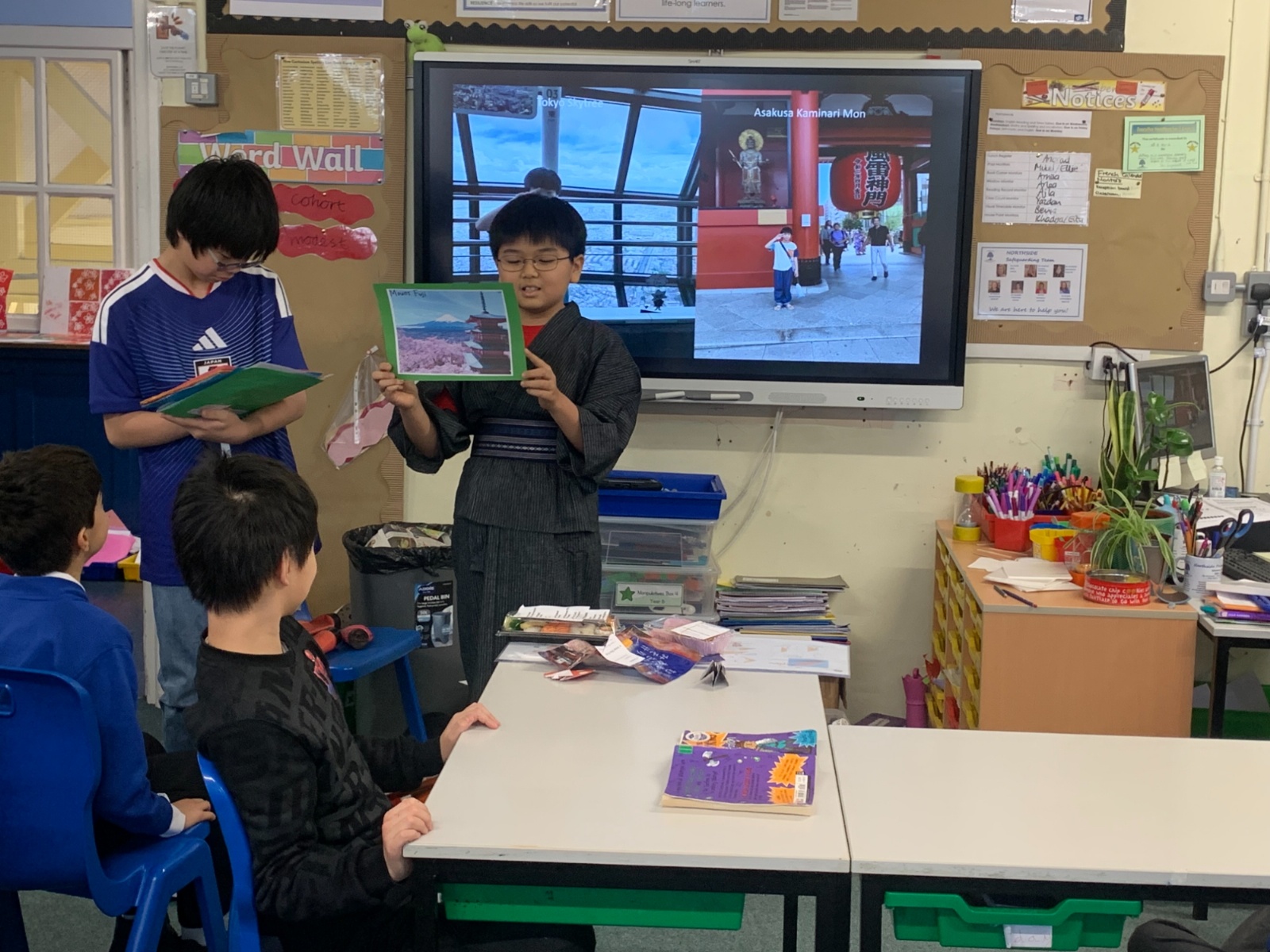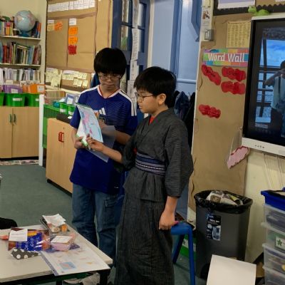 The children were treated to presentations about Japan from both Eita and Benjamin and they created sashiko patterns on polystyrene tiles, creating some wonderful prints.