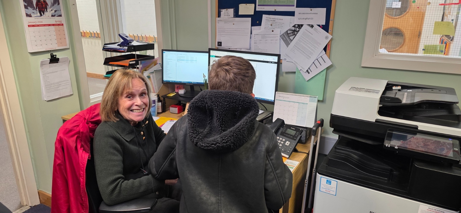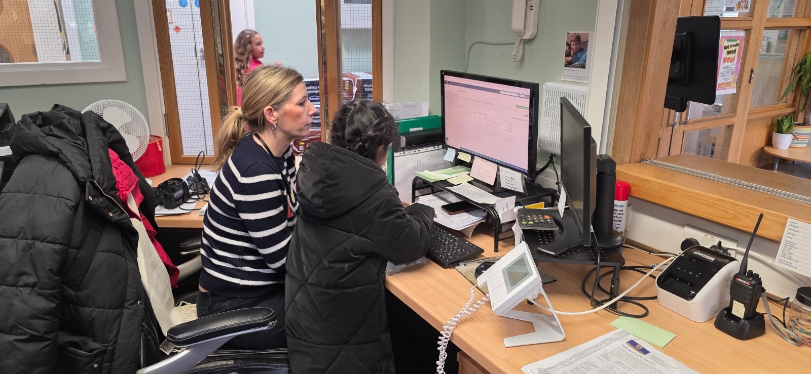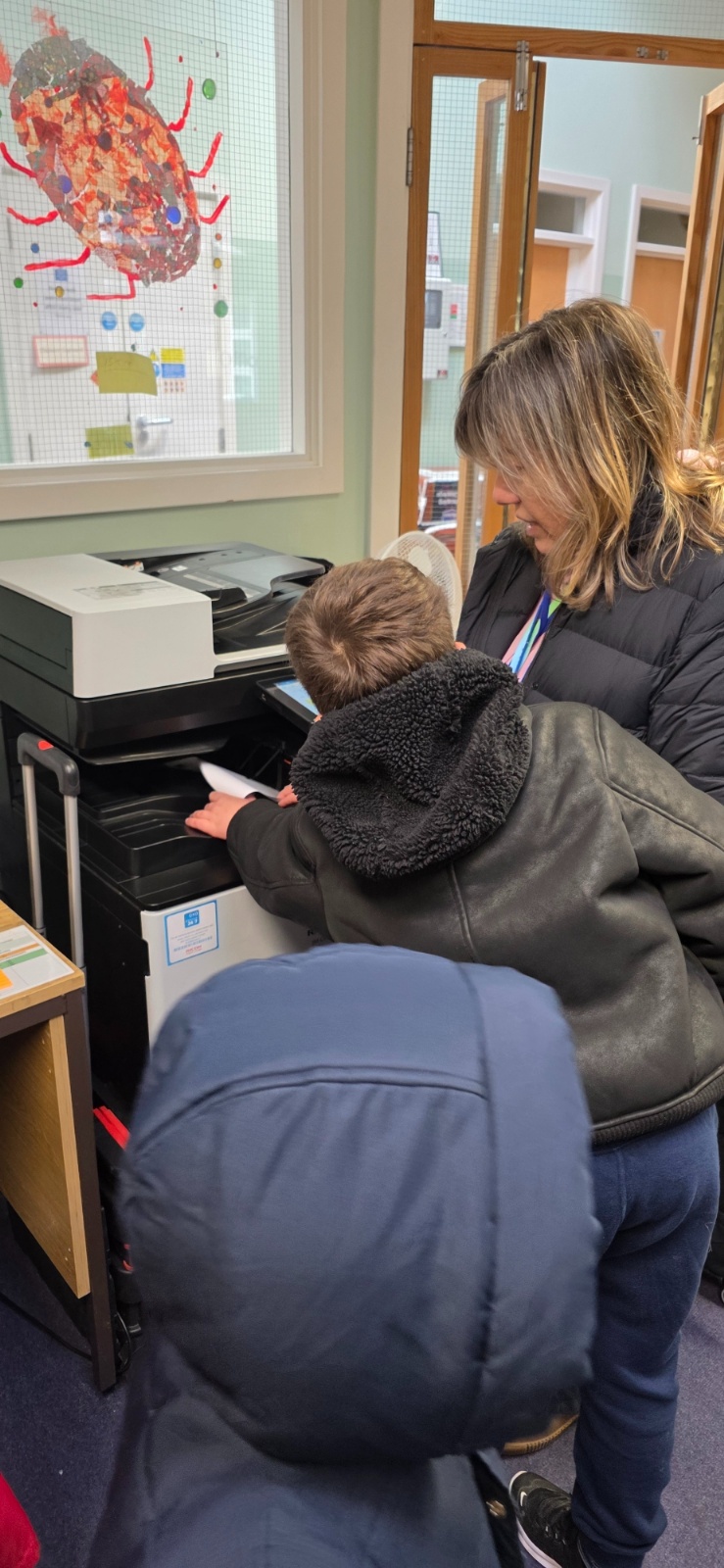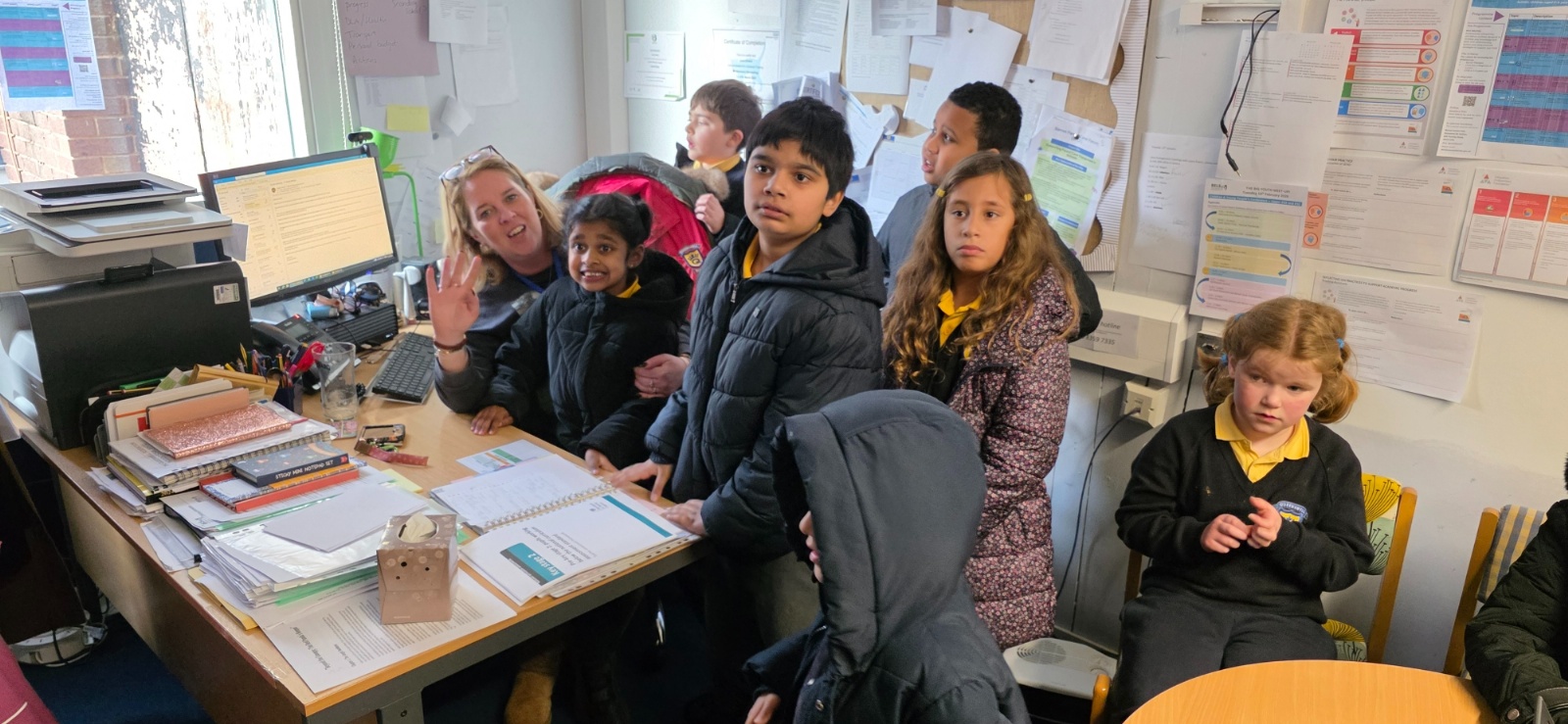Owl class on their community walk around the school, meeting different adults in our school.