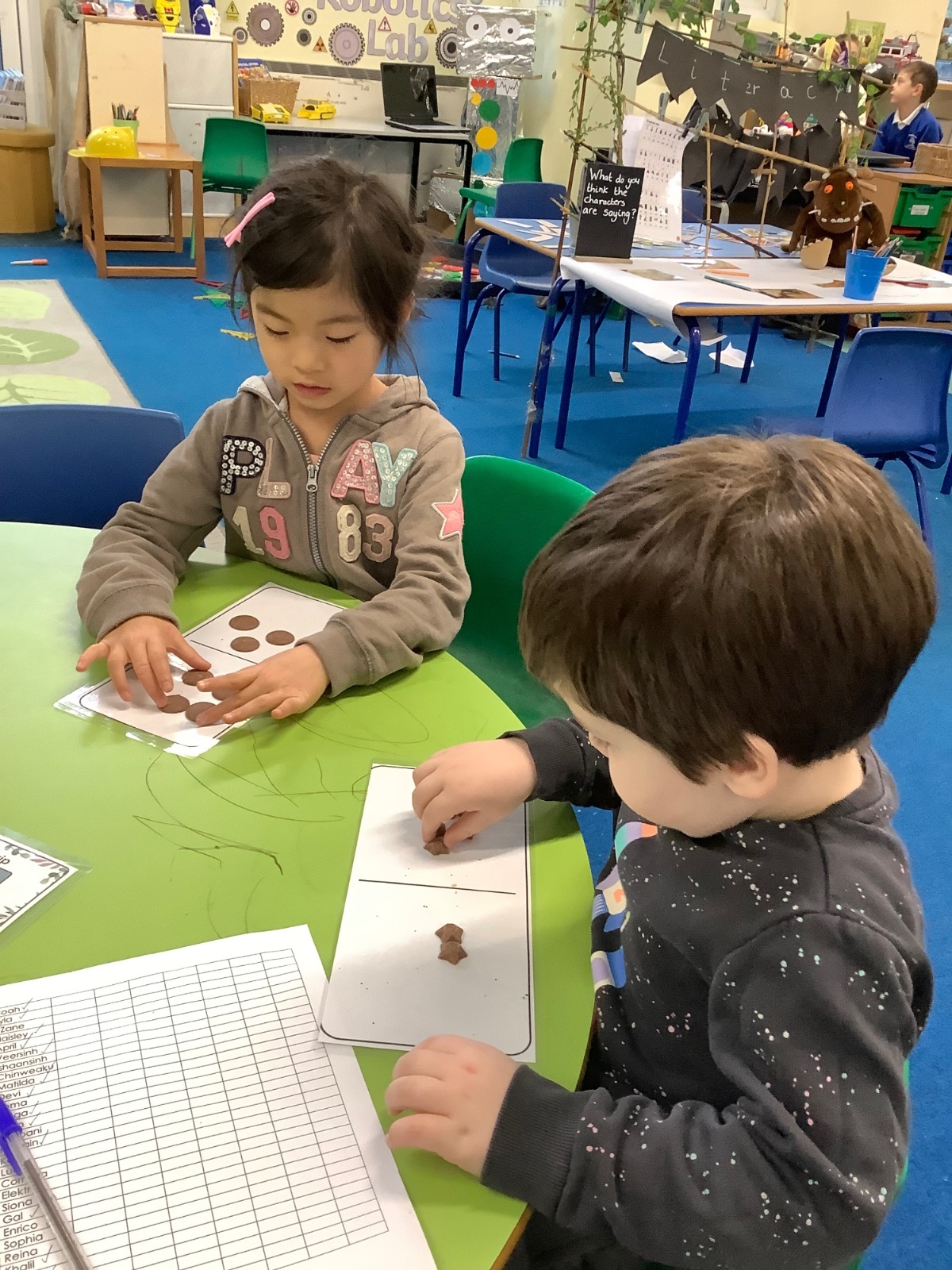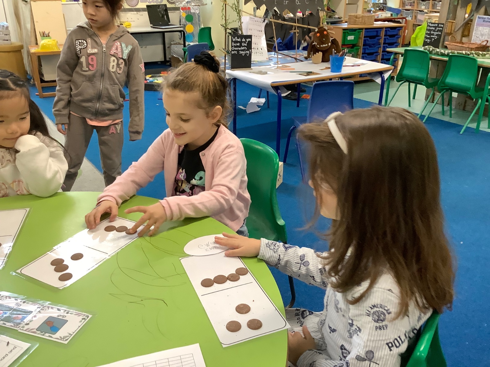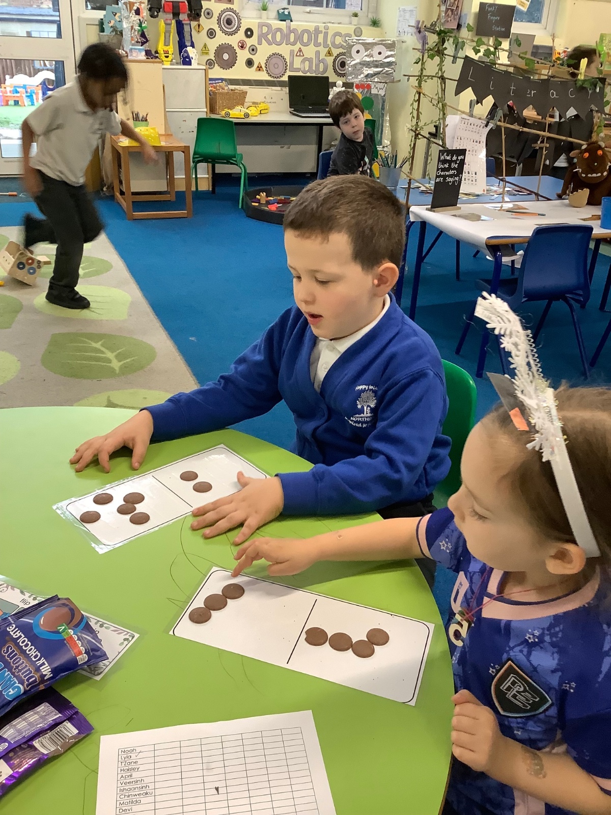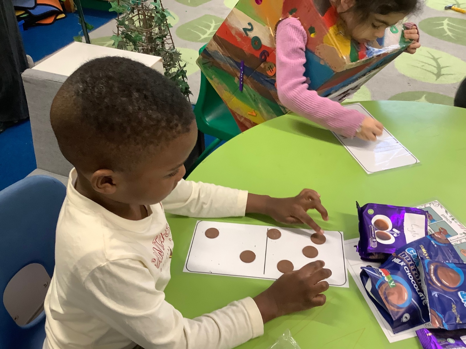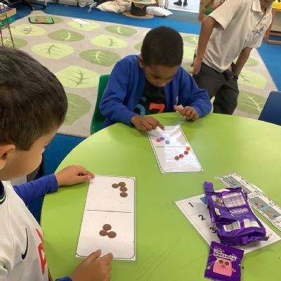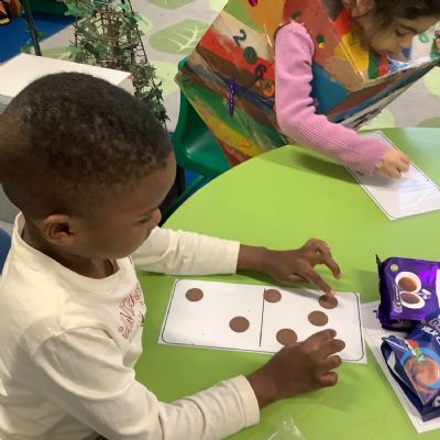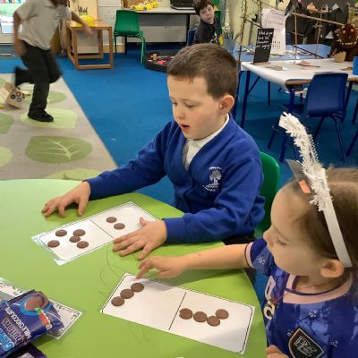 For Maths Number Day, we made dominoes with a value of 7. We used chocolate buttons to find all the different ways that we can share 7 into 2 equal parts.