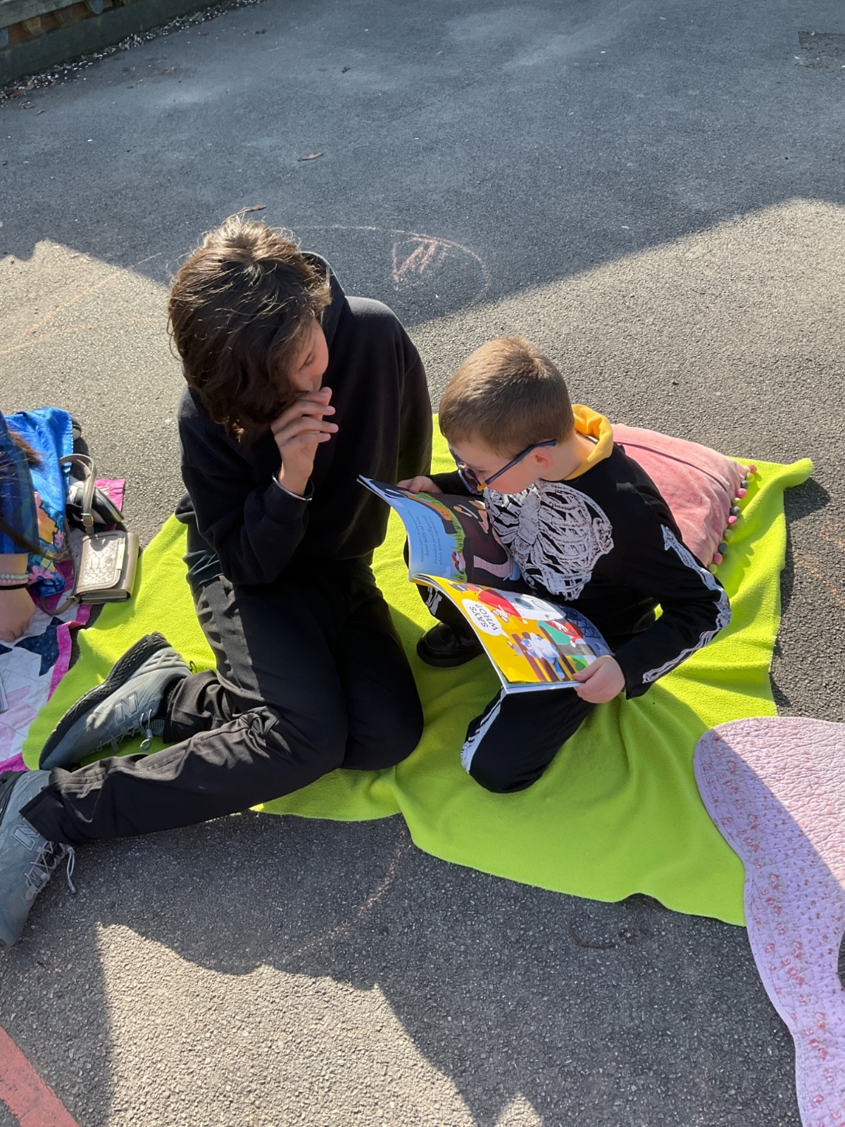 Elm went to visit Aspen to enjoy an afternoon of buddy reading, and they enjoyed sitting out in the glorious weather reading their favourite books to each other. How wonderful!