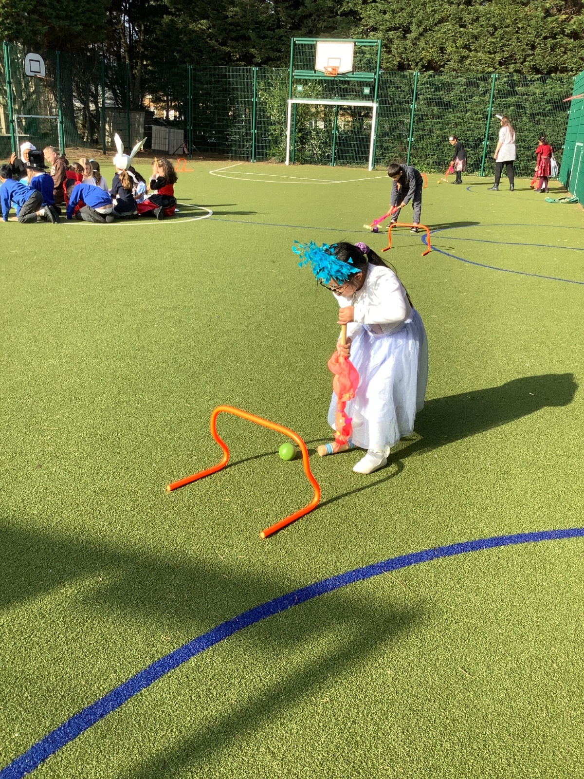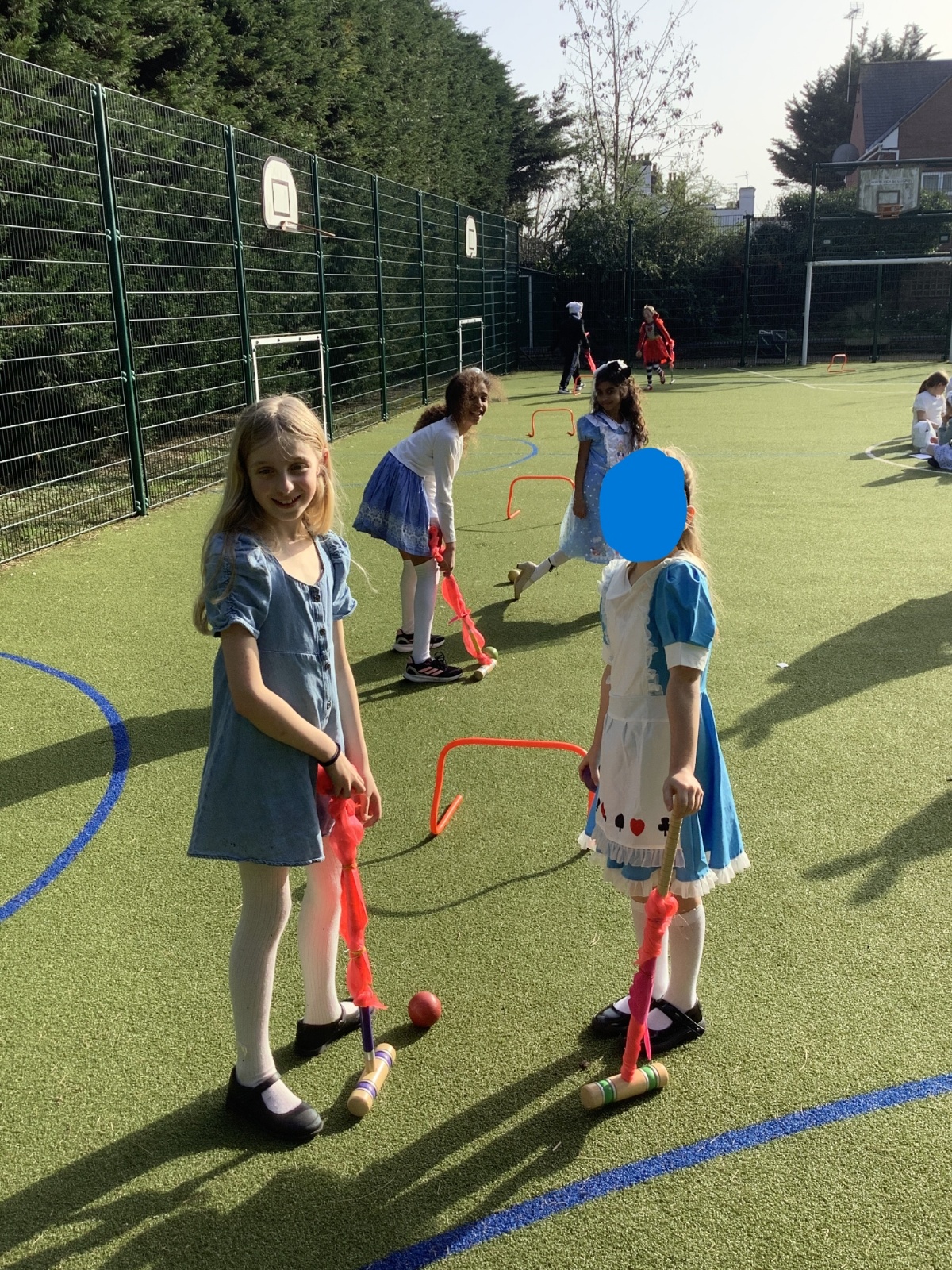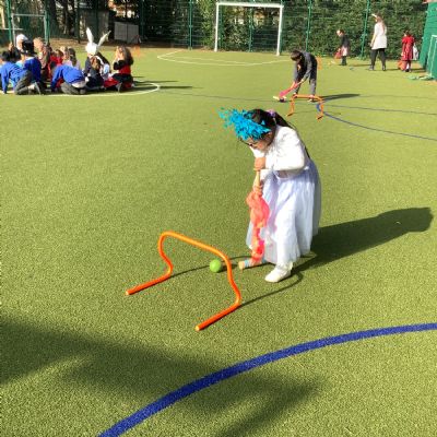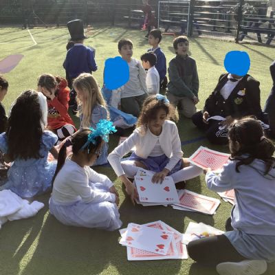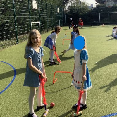 World Book Day- Alice in Wonderland themed croquet, playing games with giant playing cards and learning about the history of 'Alice in Wonderland' from our maths volunteer, Mr Fernandes.
