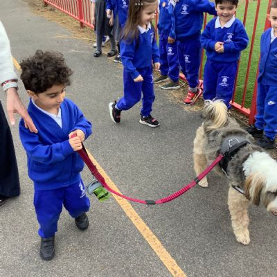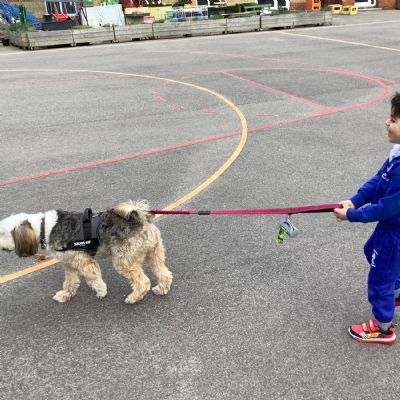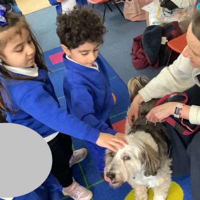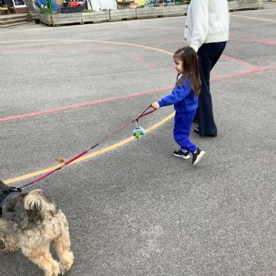 As our Marvellous Middle we had a visit from Eddie the dog. He showed us some tricks and we got to walk him! He was so soft and fluffy!