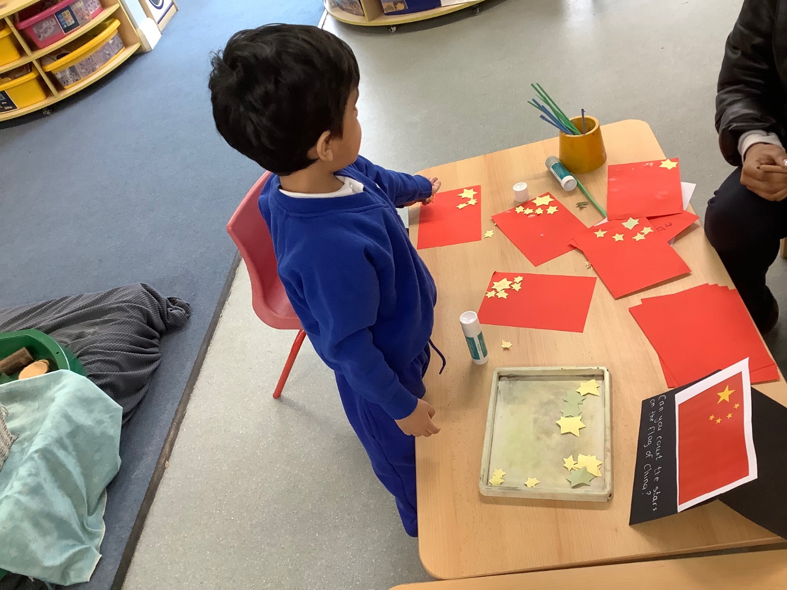 For our brilliant beginning, we acted out the Chinese New Year story. We learnt the names of the animals that took part in the race and moved like the animals. We also had a Chinese Restaurant in our role play area.